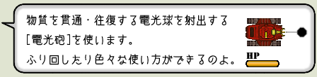 超戦車アドベンティア メカデザイン:神戸牛アドベンティアは、搭乗したキャラにより使用可能な武器3種が決定する。 各武器にはそれぞれ長所と短所があり、状況に応じていつでも切り替えることができる。 車体は超装甲だが武器システムは壊れやすく、被弾すると使用中の武器がダメージを受ける。 欠点は燃費の悪さにより活動時間が限られていることと 武器が全て破壊されると内部爆発を起こして、大破する恐れがあることだ。 狙え! そして撃て! ![]() 砲塔を旋回させ、進行方向と異なる方向にも攻撃できる。画面は砲塔の向きに合わせ回転。 敵から身を隠せ! ![]() アドベンティアは敵戦車に発見されるまで攻撃を受けない。 敵の死角に回り込め! 様々な仕掛けや罠 ![]() ガスタンクを撃てば… 敵戦車を一斉に破壊! 爆風に巻き込まれないように注意! ![]() 一見なにも無いが… 地雷を探知! 地雷原に敵を誘い込め! ![]() 赤外線に触れると警報が鳴り、集中砲火を受ける! 慎重に避けろ! |