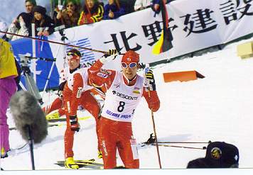 2000.2.7(月) 公式練習<公式練習中の表情。soraさんが撮影。> <同じく公式練習のジャンプ 撮影:hayashi>