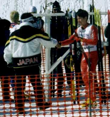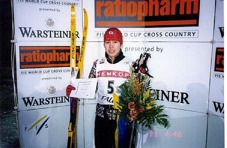 '97-'98シーズン 自己最高位 5位入賞を果たしたFalun(SWE)での入賞式の風景。