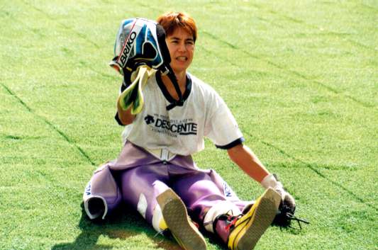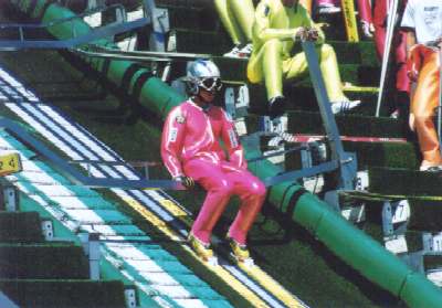 1999.8.23 しゅりさん撮影 これもジャンプを飛び終え、トランシーバーを 手に持っていますね。 ジャンプ台を見つめ、つぎの方のジャンプを 見ているのでしょうか? |