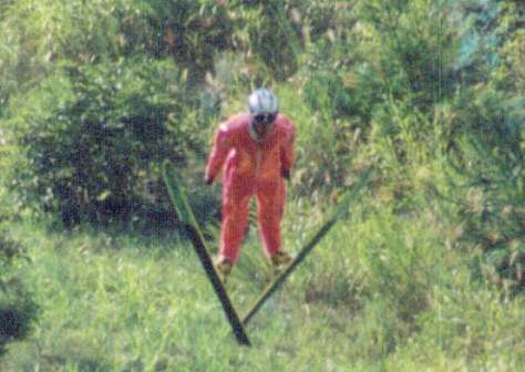 ノーマルヒルで彼らが練習をしているとき、スモールヒルでは上越の小学生が2人、 ジャンプの練習を行っていた。この子供たちがとってもかわいく、朝も元気に見も知らない私に 「おはようございます!」と元気に挨拶をしてくれた。 「がんばってね!!」と声を掛けると、嬉しそうに「はい」と… 森選手も子供の頃この野沢のスモールヒルで楽しみながらジャンプをやっていたのだろう。 この子供たちの飛距離はまだ10mにも満たない。しかし、小さな体にジャンプの板を背負って 何度も何度も階段を上りジャンプを飛び続ける姿を見ていると、本当に胸を打つものがある。 彼らが大きくなってどんな選手になるか、今からとても楽しみである。 また、この小学生のコーチの方ともいろいろなお話しをさせて頂いた。 その中でこのコーチの方は 「野沢のジャンプ台はソーメンの滑りが悪くってね、ちょっと怖いんだよ」とおっしゃってた。 そういうことがあるのか・…ジャンプ台のソーメンの滑り、そんなことにもジャンプ台によって くせがあるということを、私は初めて知った。 いろいろなかたとお話しをさせて頂くと、本当に勉強になる。 野沢に行って、この2人の小学生、そして素敵なコーチにお会いできたことをとても嬉しく思っている。 |