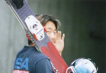 ![]() <真剣な顔付きでジャンプ台へ向かう森選手> |