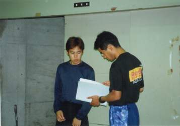 何やら河野コーチと打ち合わせ中 |
