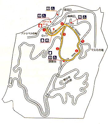 スタート地点から長い上りがあります。続いて平坦なコースになりその後の上りを終えると展望台に着きます。展望台から先は、下りが続きます。それほど勾配はきつくなく、初心者でも充分に楽しめます。