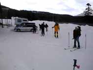 上富のスーさんは今日がテレマーク2回目とかで、時折アルペンターンが混じるテレペンターン。降りてから、ずっとクライミングサポートを付けっぱなしだった事に気が付いたそうだ。そりゃ苦労する訳だ。