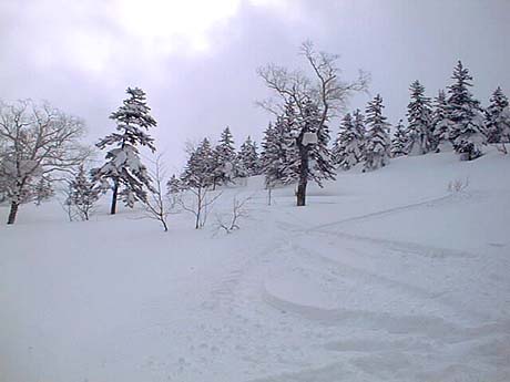 すねまでのラッセルだが大した事はない。途中、普段はニセコがホームゲレンデという3人組のバリバリテレマーカーが、我々を抜いていた。彼らの馬力や履いているスキーを見てもただ者ではない感じ。
