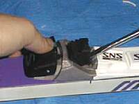 ヒールピースは2分割式で、これはネジ固定です。接着剤も要りません。まずヒールピースをトーピースに押しつけてはめ込みねじ込む。