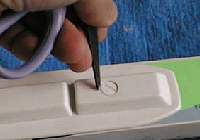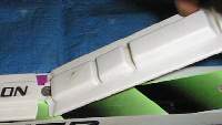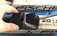 トーピースカバーは、写真のようにマイナスドライバーをこの様に、靴金具押さえの下に差し込んで下に寝かしながら、カバーを指で押し込むとカパッとはまります。