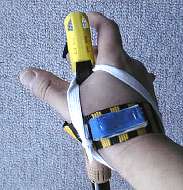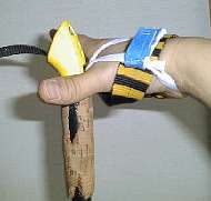 これならポールのグリップが下に落ちないので、たとえ疲れてヘロヘロになっても、手を握りさえすれば即ポールを突けます。私も練習時はこのおかげで楽しています。でも残念ながら大会時は使っていません。なぜかって?。これだとデジカメのシャッターが切れないからですよ!。(バカもん!、もっと真面目に走らんかい!)
