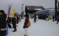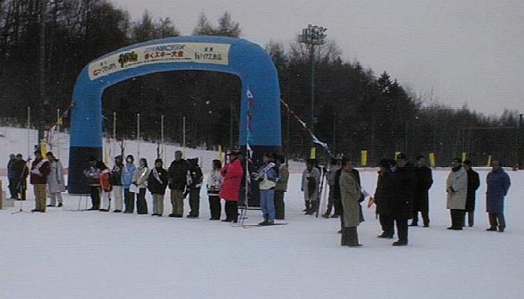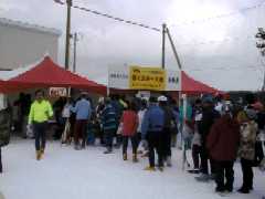 参加費無料で甘酒・シチュー・おみやげ付きと、昨年でしっかり味をしめ、今年も来ましたこの大会。当日の天候が心配されたが、ちょっと小雪が時々降るものの風もなくまずまず。参加者人数も約1800人との会場発表で、なかなか盛況であった。