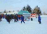 地下鉄真駒内駅に朝8時頃着き、大会運営の無料送迎バスで羊が丘展望台へ到着。早速受け付けを済まし、暖房付きの2棟のプレバブで着替え等準備をする。手荷物置き場もここにありますが、鍵着きロッカーはありませんので貴重品は身につけておいた方が(有料の手荷物預かりもあるとか)。