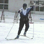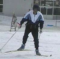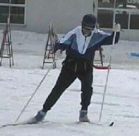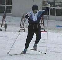 こうすることでその後の動作で、ステップ板を前に滑らせながらステップ出来、ただ重心を移動するだけよりスキーの推進力が増します。