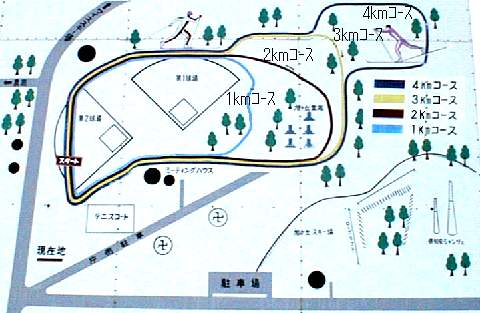 その公園内、スキー場に向かって左側の野球場を起点として、クロスカントリー場が併設されています。
