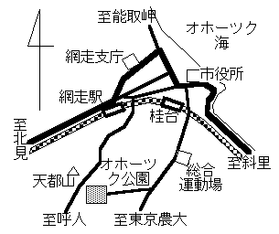網走は天都山の麓に、道立のオホーツク公園があって、ここのセンターハウス前から歩くスキーコースが始まります。公園内を歩く、展望のよい2.5Kmコースと、公園外周を走る、スケーティング出来る幅のある、3kmコースの2通りがあります。