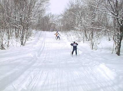 コースは、あまり起伏のない、自衛隊の演習場内の林の中のコースで、圧雪は普通の雪上車で行っており、メジャーな大会でおなじみのコースピステ(スキー場の雪上車)整備ではないため、コースが多少波打ったり凹凸があったりします。でもこれは愛嬌。