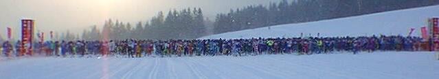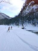 クロカンを始めた1992年から欠かさず出ています。クロカンを始めたのはこの大会に出るため。シーズンの最大目標も、この大会を完走することです。国内最長を誇るこの大会、とは言っても、アップダウンの少ない、基本的には白滝から上湧までの下りコース。おまけに例年、偏西風のお陰で追い風なので、数字ほど過酷ではありません。(そのかわり風向きが逆だと???)。湧別川沿いで吹きっさらしが少ないので、そんなに吹雪きもしないし。