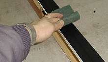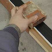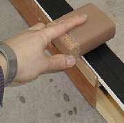 この荒削りの際は、ペーパーはコルクではなく、積み木やブロック等の硬い平坦な物に巻き付けた方が良いでしょう。コルクだと、凸も凹も一様に削れるため、ソールがなかなかフラットにならないからです。