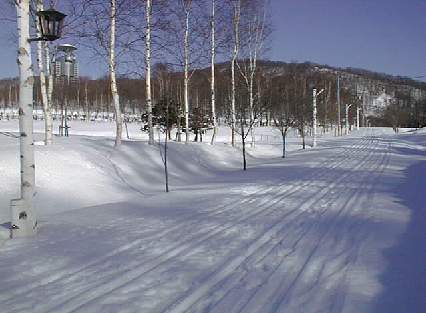 緩い起伏の公園内のコースは初心者も安心して滑られ、UFOのようなスペースカリオン(展望塔〜冬季は登れません)付近からは美唄方面が望めます。公園内だけで3km位は歩けます。