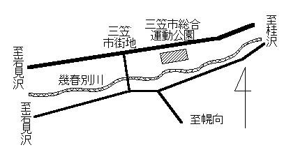 スタート地点は三笠ドーム前のモニュメント”MIKASA”の横で、陸上競技場、野球場から幾春別川沿いを経て、スタート地点に戻ります。アップダウンのほどんどない、初心者に最適なコースです。