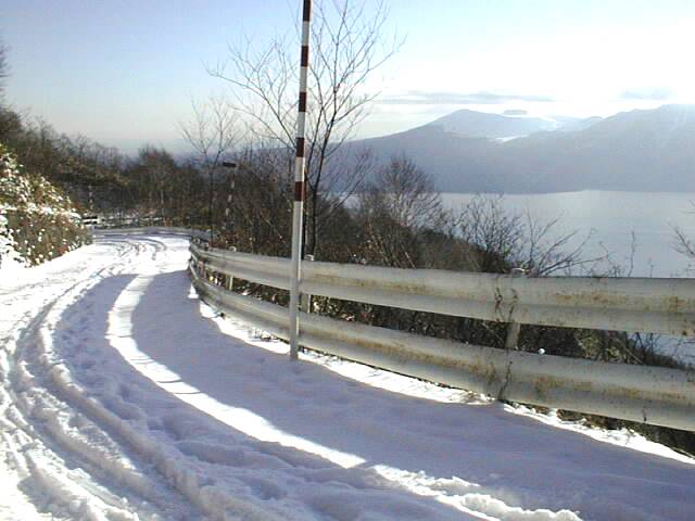 樽前山や支笏湖を望みながら一気に、鱗付きの歩くスキー板でわずか15分で登山口着でした。但し途中スピードが出ますので、プルーク制動がしっかり出来る方向きです。