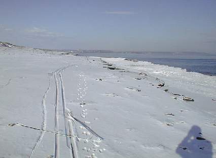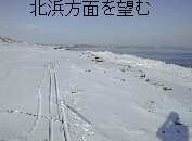 コムケ湖の東岸には除雪された車道がありますが、ここから先も、飛行場と海との間を歩いて、シブツナイ湖へ進むことが出来ます。