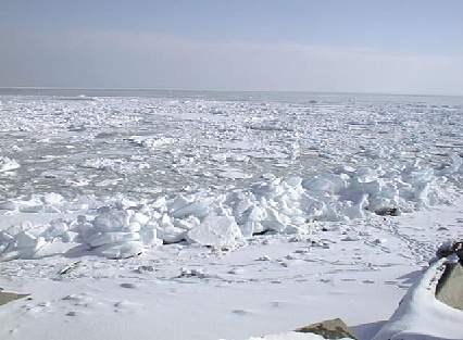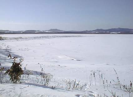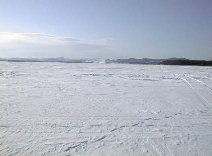オホーツク沿岸には,冬に氷結する湖が、たくさんあり、淡水湖なら氷の厚さが50cm以上になるので,人が乗っても大丈夫。