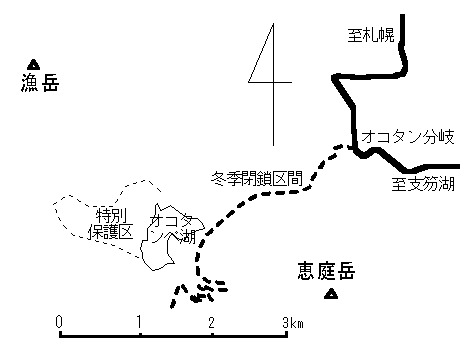 除雪は国道のみですので、オコタン分岐からオコタンぺ湖展望台までの約2kmは非除雪です。年によっては工事関係で除雪している事もありますが、その場合でも工事関係者のみ通行可となります。駐車スペースは、オコタン分岐付近に確保されている事が多いようです。