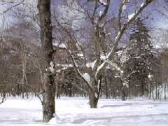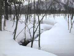 また森の中には、このような開けた場所もありました。夏では近づくことの出来ない、おそらく湿原か小沼ではないかと思われます。