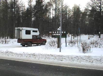 もし苫小牧口に車を置けなかった場合は、営林署の作業所のある丸山から林道をたどって行く方法もあります。向かいに送電線管理用に除雪したスペースがあることが多いです。またちょっと歩けば近くに国道の広い待避所もあります。(但し一般車の駐車はご遠慮下さいの看板有り(>_<)。)