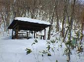 休暇村から約1kmほど歩くと東屋に着きます。ここから千歳市青年の家までは起伏のない,口笛の出そうなほど快適なコースとなります。