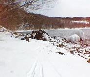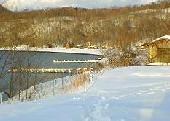 程なくしてモーラップのキャンプ場に着いて、往路は終了。 復路ですが、来たとおりでは芸がないので,モーラップ〜青年の家までは湖岸に沿って帰りました。所々雪が少なくて石が出ていたりしますが,起伏は全くなく(当たり前か),精神的にも往路より楽。