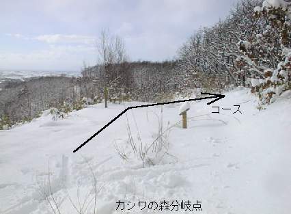 ここからはスキー場の上部の稜線伝いにカシワの森に向かいます。道は明瞭で視界も開けたままです。