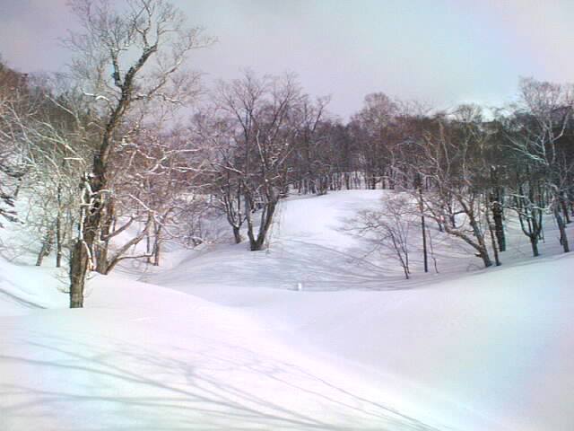 写真左にある、通称デルタ大斜面と呼ばれる、標高1400m〜700m間の、三角形の疎林の大斜面を一気に滑降出来るこのコースはよだれものです。