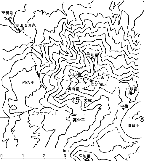 標高〜2197m(比布岳),標高差〜約1200m