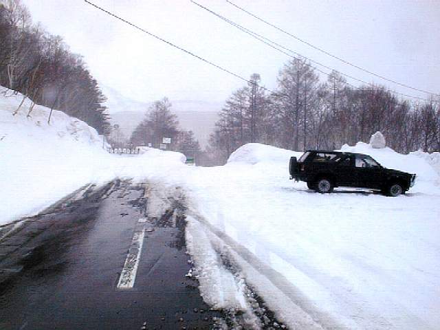 下りきってからの道道も、行きのトレースさえあれば、帰りは歩くことなく快調に直滑降で下れます。