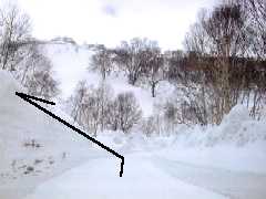 北尾根下部にはこんなミニオープンバーンもあってお楽しみ(但し雪の安定している時ネ!)。
