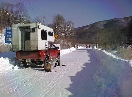 穂別町富内から福山方向に道道を走りますが、残念ながら途中でご覧のとおりゲートが締められ、林道入口の約2kmちょっと手前から閉鎖となっていました。(必ずしもここから常に冬季閉鎖という訳ではないようです。事前に土現にご確認下さいませ。)