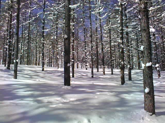 この樹林はかの悪名高きカラ松の植林地ですが、肉牛の林間放牧林のためブッシュが少なく、そんなに密林でもないので、林内は明るく、登りも下りもそこそこ快適です。