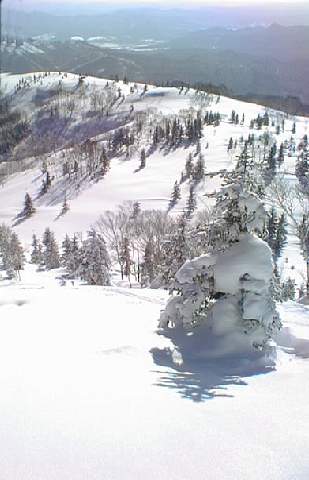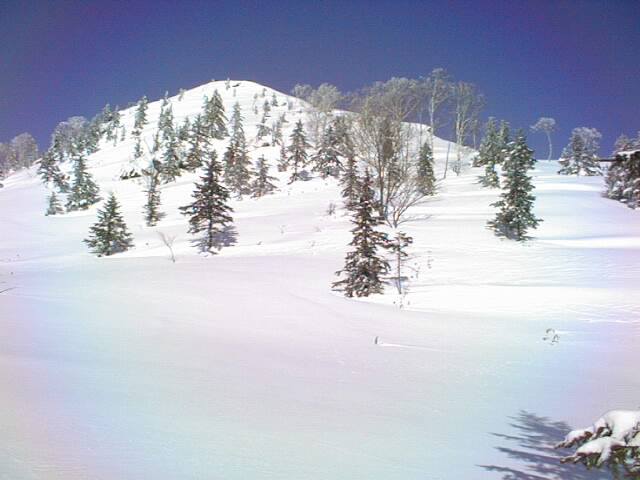 下りは、山頂直下の斜面と白い尾根からの下りは、標高差こそ少ないものの、写真を見ての通りとても楽しめます。