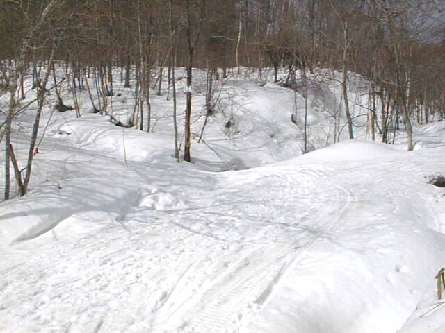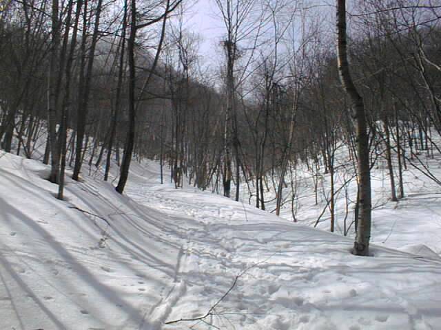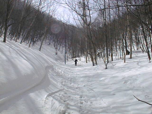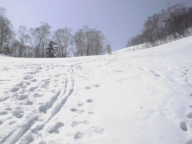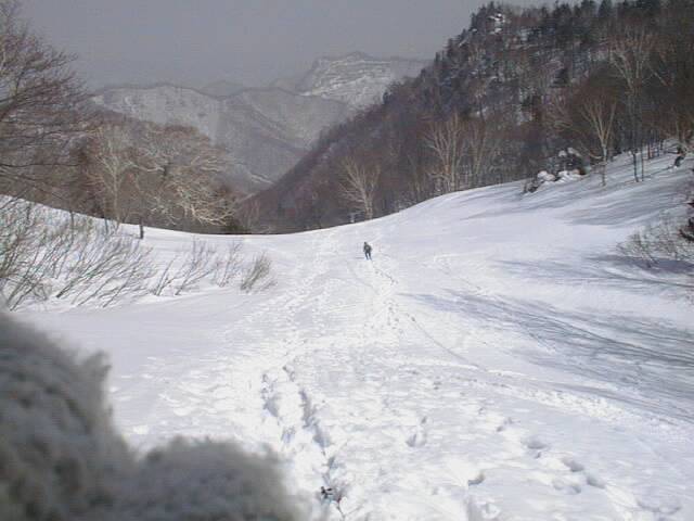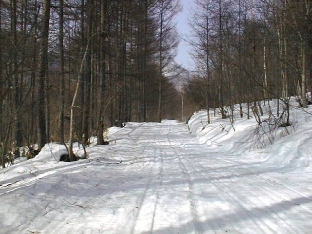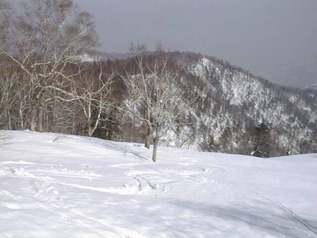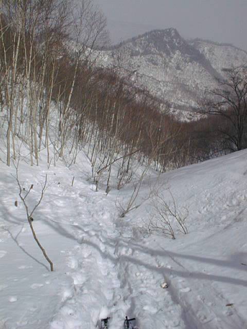 林道に着いても、標高300m付近の分岐まではひたすらプルークボーゲンなので、あまり快適とは言えません。この日もスノーシューで来ている人が1/3程居ましたが、これと下りに時折ミニスキーを組み合わせるか、あるいはポコ越えに強いテレマーク向きの山だなあという印象です。