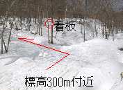 標高約300m地点で林道はT字路となり、百松沢山方面はここで直進せずに左折し(小さな看板あり)、ここからもなお林道を辿ります。
