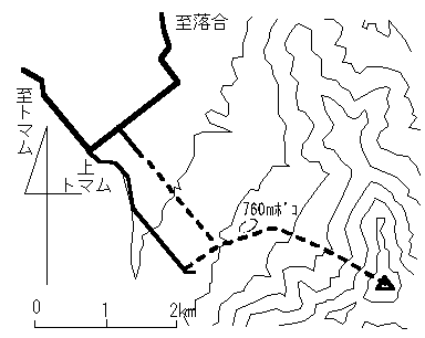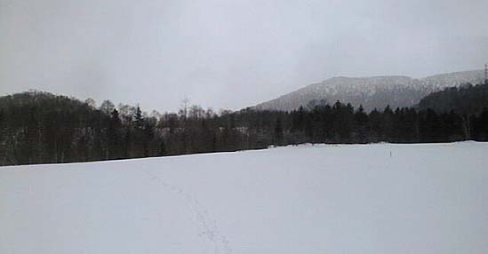 登り口は、三和さんのガイドブックのとおりの、上トマムから道道を落合方向に一区画行って、右折しての農道からだと、道道から600mで現在除雪終点となっていました。上トマムから南東に行った最終農家からの方が楽出来るでしょう。但し農家の方に一声かけて、邪魔にならない所かを確認しましょう。