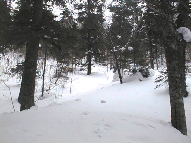 標高1000m付近からようやく樹林の密度も薄くなり、樹種も白樺等から、エゾ・トドの太い針葉樹林と変わります。