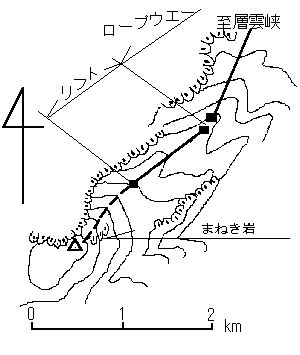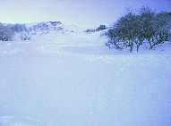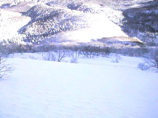 下りは、登りの際越えてきたフリコ状の沢形のオープンバーンを、程良いところで左にトラバースしながら下ってくると、黒岳スキー場に着きます。