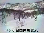 ここを滑り降りたら、来た時のトレース通り、ペンケ目国内川支流を渡渉して、駐車場に帰るだけです。下山口にはちょうど都合よく温泉もありますので、至れり尽くせりと行った所でしょうか。