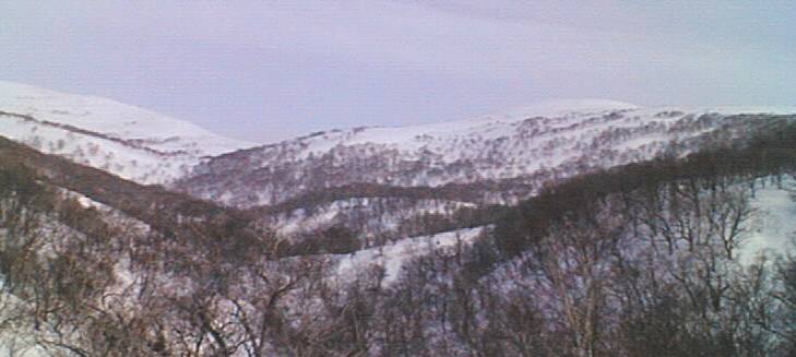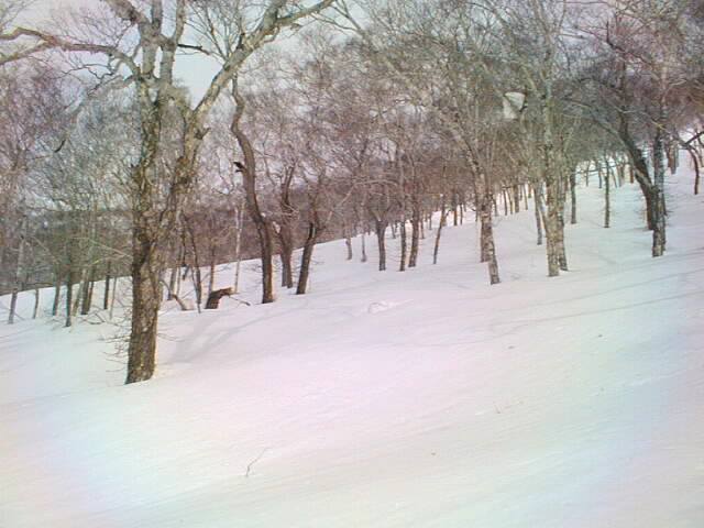 ペンケ目国内川右股の源頭斜面の上には、下部は疎林、上部はオープンの大斜面が広がっています。おまけに南東向きと、風の影響も少ないとくれば、初心者から上級者まで下りはよだれものです。
