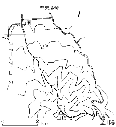 小清水峠からのお手軽コースもありますが、尾根が細くていい斜面があまりありません。ここはせっかくですから東藻琴村山園からある、スキー用の刈り分けコースを登りましょう。標高800m近くまで、緩い尾根沿いに続いていますので、迷う心配もなし。刈分け終点からは狭い稜線伝いに山頂へ。 屈斜路湖のすぐそば,絶好の展望位置にあるこの山からの眺めは,わざわざここで解説するまでもないでしょう。 前のページに戻る