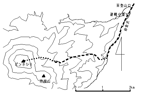 また山頂下の北東斜面は絶好斜面ながら、厳冬期は雪崩の危険が大です。この紹介文も、雪の安定した残雪期を前提として書いています。残雪期以外の時期は、”ハードなコース”の方の分類になりますので、その点ご配慮下さい。
