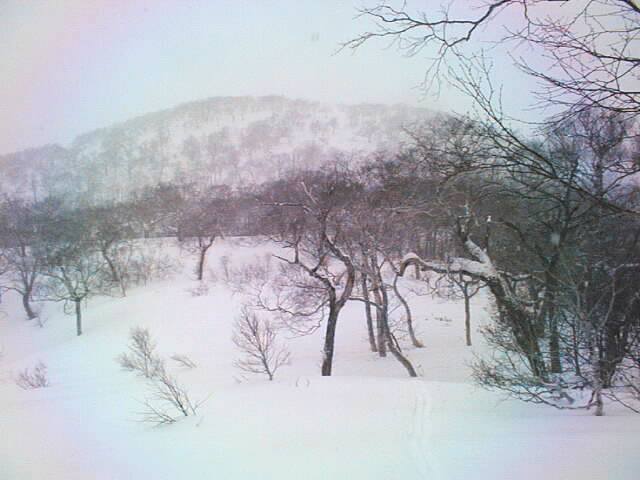 一応1000m峰とは言っても一時間弱で登れる山です。スキーについてもさほど期待してはいなかったのですが、なかなかどうして。風や日射の受けにくい東斜面には20〜30度のダケカンバの疎林の斜面が広がっていて、オフピステコースを取ると登り以上のダウンヒルを楽しめて、ほとんど歩くことなくスキー場着。これならダウンヒル派も納得?。せっかくの斜面ですから2度3度登って楽しみましょう。