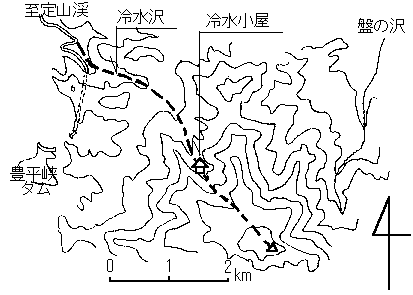聞くところによると、冷水沢とは反対側の盤の沢が、斜度がすごく、滑り応えがあるそうですが、降りてから国道までの沢下りがだるそうなので、まだ行ってません。自信のある方は是非どうぞ。